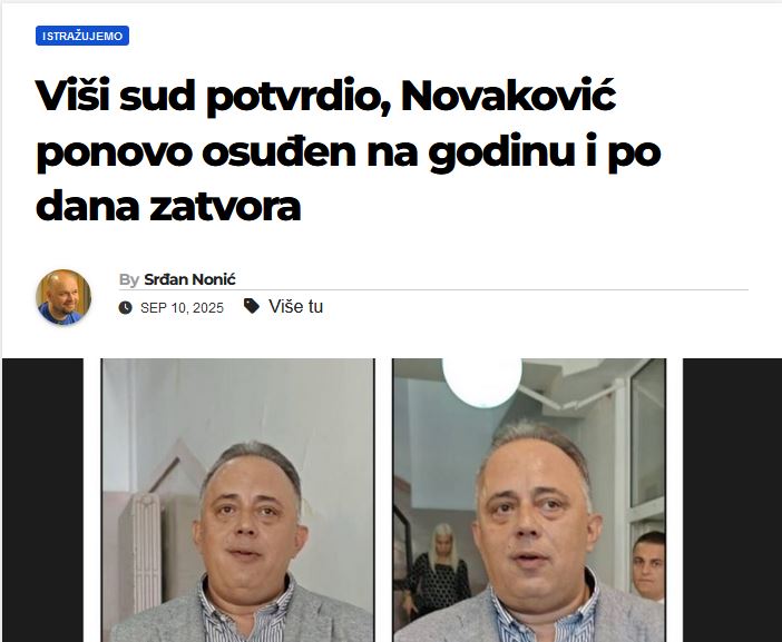 Advokat Krasić kaže da je očigledno da Novaković izbegava pojavljivanje na sudu, dok je na današljen ponovo odloženom ročištu, sedmom po redu, tražio da se Novaković prinudnim putem dovede na suđenje.